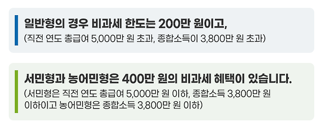 그리고 비과세 혜택 초과 금액의 경우에는 9.9% 분리과세합니다. (지방소득세 포함)