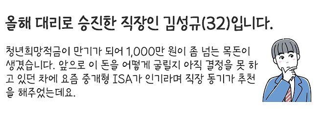 이에 정부에서는 청년들의 자산 형성을 위해 다양한 지원을 하고 있는데요. 이 중에서 요즘 주목을 받고 있는 것이 바로 ISA(Individual Savings Account, 개인종합자산관리계좌)입니다.