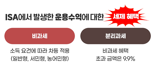 하지만 ISA에서는 발생한 운용수익에 대해 비과세와 분리과세 혜택이 주어지기 때문에 금융소득종합과세에 대한 걱정을 덜게 됩니다.