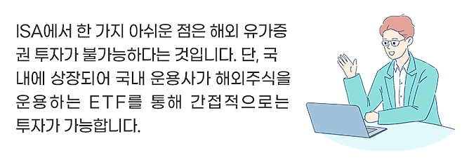즉, ISA에서 투자한 다양한 상품 중 손실분은 다른 상품의 투자 수익과 상계가 가능해 일반계좌 대비 세금을 줄일 수 있습니다.