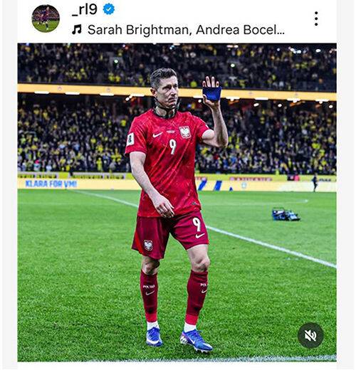 레반도프스키는 어제(1일) 열린 스웨덴과 유럽 플레이오프에서 폴란드가 2대3으로 져 북중미 월드컵 본선 진출에 실패한 뒤 자신의 소셜미디어에 그라운드에서 관중석을 향해 주장 완장을 들어 보이는 자기 사진을 올렸습니다.