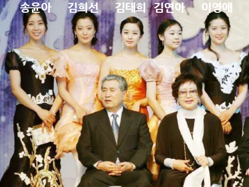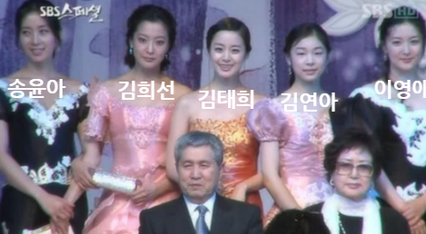 디자이너 앙드레김 패션쇼에 상상하기 힘든 인물들이 한 자리에 모이게 됩니다. 왼쪽부터 배우 송윤아, 김희선, 김태희 피겨여왕 김연아, 이영애까지.