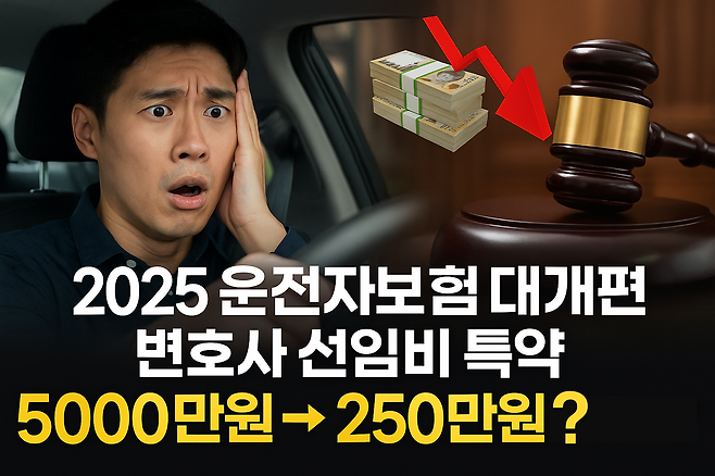 2025년 12월, 운전자보험의 핵심 특약으로 꼽히던 '변호사 선임비용 보장'이 대폭 축소됩니다. 기존에는 최대 5000만원까지 지원되던 보장이 이제는 심급별로 나뉘고, 자기부담금이 생기면서 실질 보장액이 250만원 수준까지 줄어들 가능성이 있습니다. 이번 개편은 금융감독원의 권고로 이뤄졌으며, 과잉 보장과 보험금 누수, 도덕적 해이를 막기 위한 조치로 풀이됩니다.