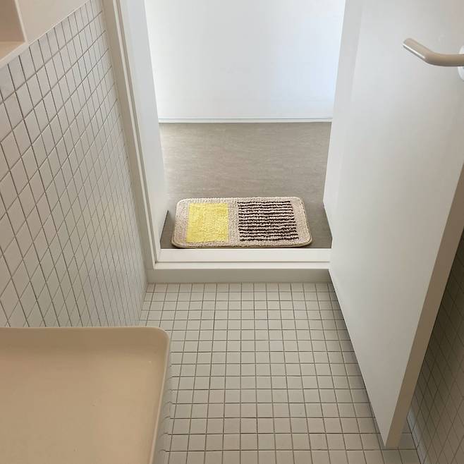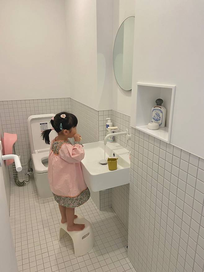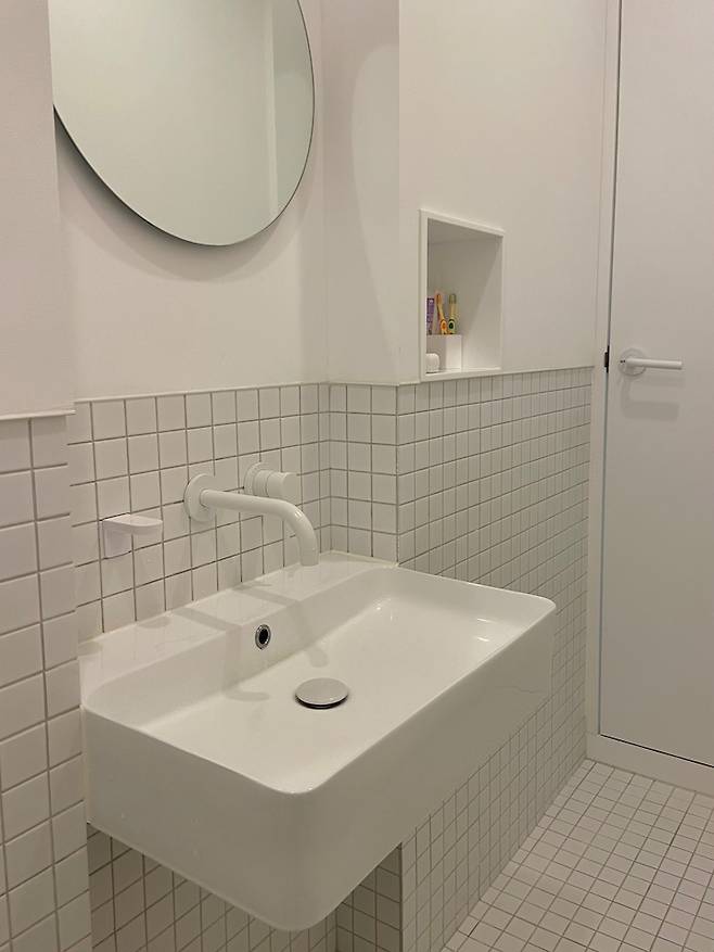 왼쪽은 욕실이 자리하고 있어요. 아이들과 제가 목욕하며 일상에서 가장 많이 사용하는 공간이에요.