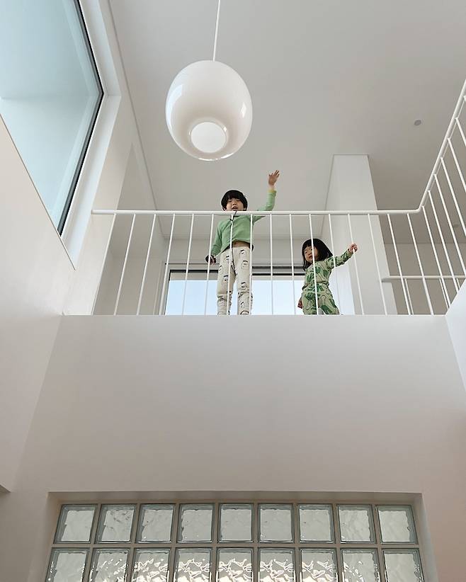 3층에서 비행기를 날리며 노는 아이들의 모습이에요.