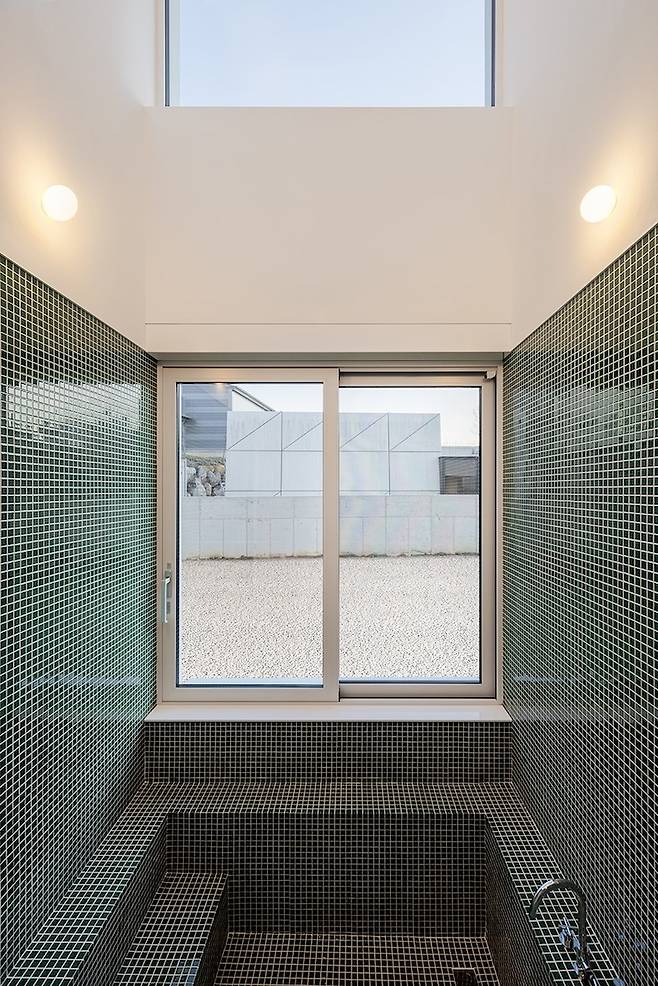 마당으로 바로 나갈 수도 있는 수영 공간을 원했어요. 창을 통해 바로 나갈 수도 들어올 수도 있어요.