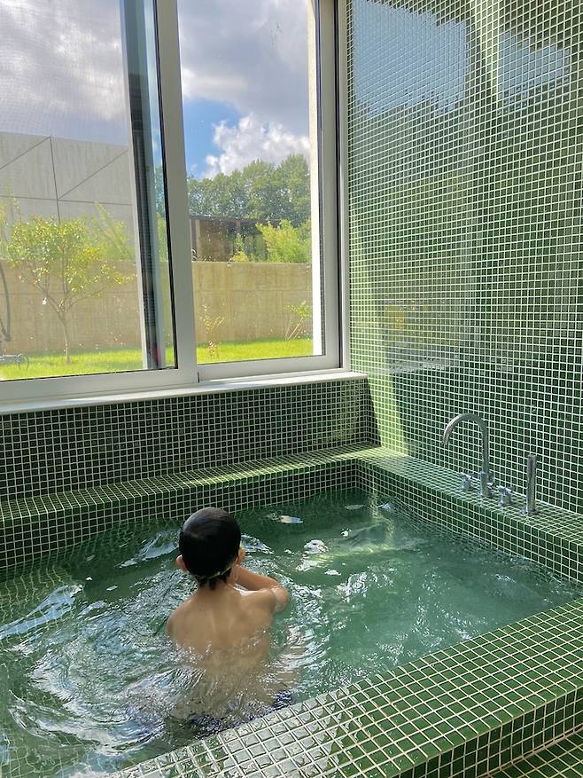 2층까지 뚫려있어 개방감이 좋아요. 여기에 앉아서 목욕을 하면 비현실적인 느낌에 압도됩니다.
