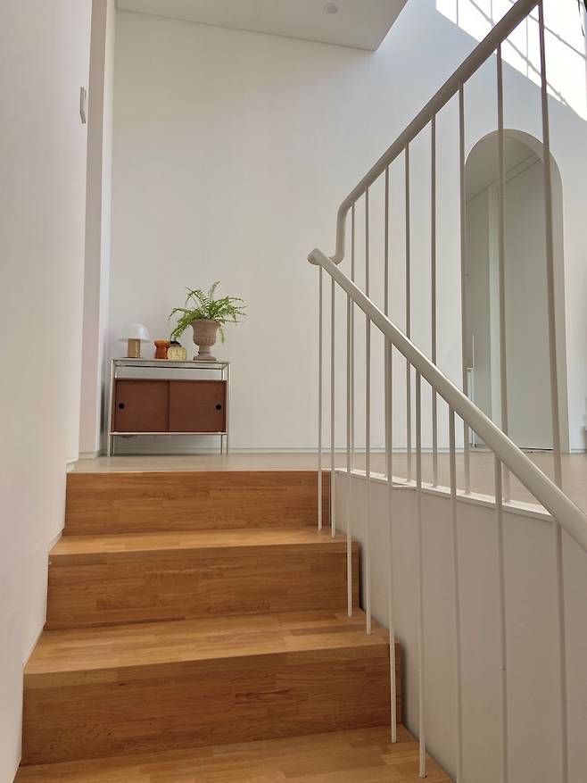 2층과 3층은 개방감 있게 이루어져 있어요. 2층 유리 블럭은 제가 집에서 가장 좋아하는 곳 중 하나입니다.
