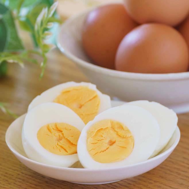 삶은 달걀 한 개는 약 77kcal에 단백질 6.3g이 들어 있고, 혈당지수도 거의 0에 가깝습니다. 필수 아미노산이 고루 들어 있어 단백질 이용률(단백가)도 거의 만점 수준입니다.