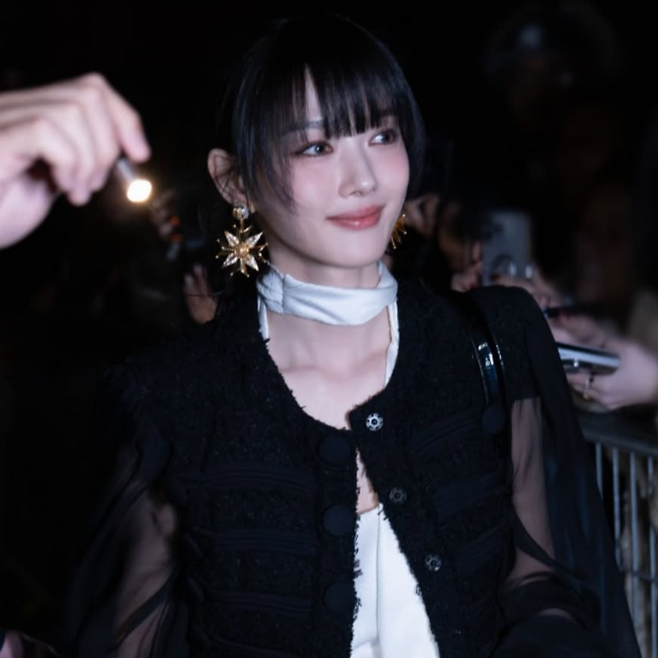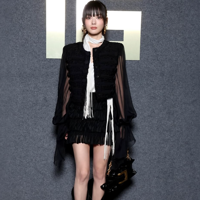 블링블링한 블랙 트위드 재킷에 브라탑을 더한 페미닌한 룩도 공개됐다.