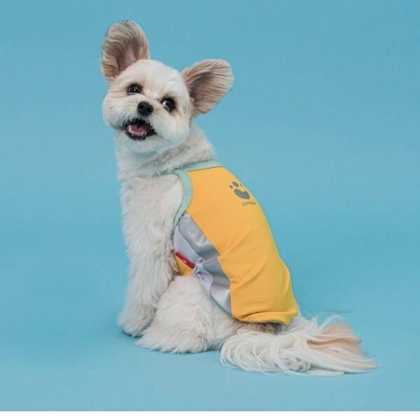강아지가 몸통 아래쪽 부분을 감싸는 디자인으로 산책 시 흙, 빗물 등으로 인한 오염 방지를 돕는 강아지 옷입니다. 옷이 아주 가벼워서 강아지에게 부담을 주지 않는답니다.