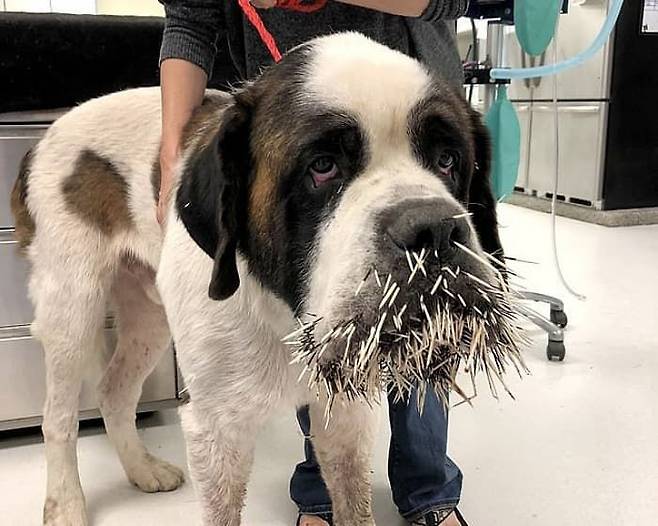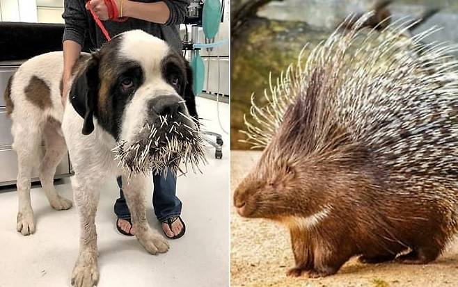 얼굴 곳곳에 야생 호저의 가시가 박혀 있는 탓에 입을 다무는 것조차 힘든 녀석. 다행히도 녀석은 인근 동물보호소로 달려가 상주해 있던 수의사로부터 치료를 받을 수 있었다고 하는데요.