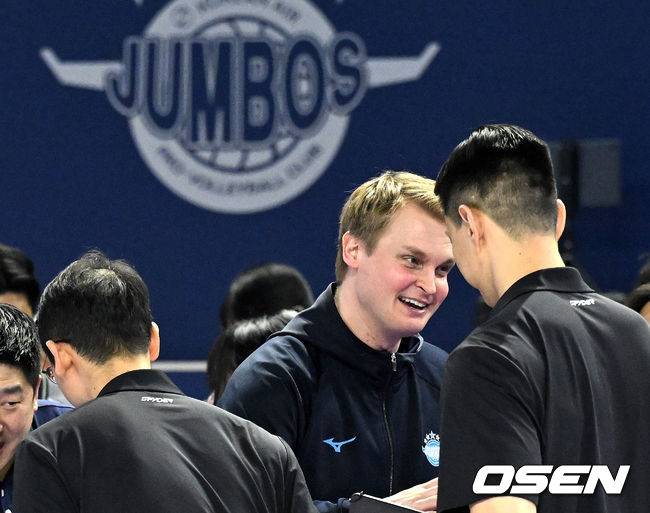 대한항공 토미 틸리카이넨 감독이 현대캐피탈 코칭스태프와 인사를 나누고 있다. 2025.04.05 /sunday@osen.co.kr
