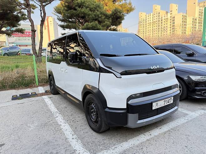 네이버 전기차 포털 ‘전기차동호회’에는 최근 경기도 화성시 임시 번호판을 달고 국내 한 주차장에 주차된 PV5 실물 사진이 1장 올라왔다.