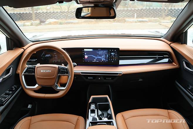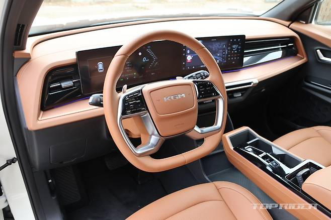 차라리 초기형 토레스처럼 센터페시아 하단 보조 디스플레이가 직관성이 더 좋겠다. 보조 디스플레이가 사라진 센터페시아 하단 공간은 스마트폰 등 수납공간으로 활용하기에 애매하다. 토글 방식 기어레버는 상단 혹은 하단으로 꾹 누르면 R/D로 변경할 수 있다.
