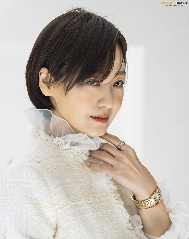 특히 짧게 다듬은 헤어스타일과 깔끔한 메이크업이 룩의 완성도를 높였죠.