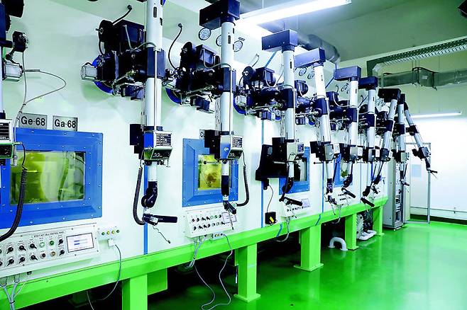 이날 첨단방사선연구소에선 저마늄-68 생산이 한창이었다. 생산은 ‘나선형 양성자 가속기(사이클로트론)’에서 이뤄진다. 사이클로트론은 양성자를 가속시켜 의료용 방사성동위원소를 생산하는 입자가속기다.