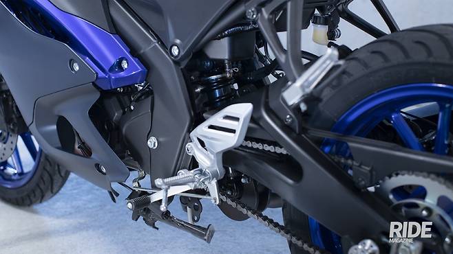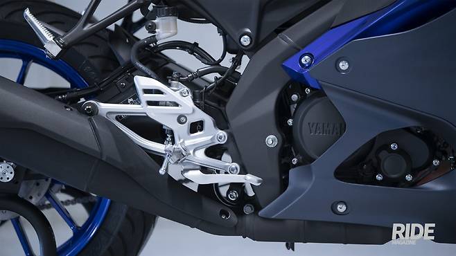 프레임은 다른 R 시리즈에도 두루 적용하고 있는 델타박스 프레임을 125cc에 맞춰 최적화해 장착했으며, 민첩한 움직임을 위해 경량의 주조 알루미늄 스윙암을 적용했다. 시트는 운전석과 동승자석을 분리한 형태로, 시트고가 825mm여서 역동적인 움직임을 만드는데 도움을 주면서도 운전자의 발이 땅에 잘 닿도록 설계했다.