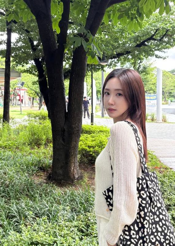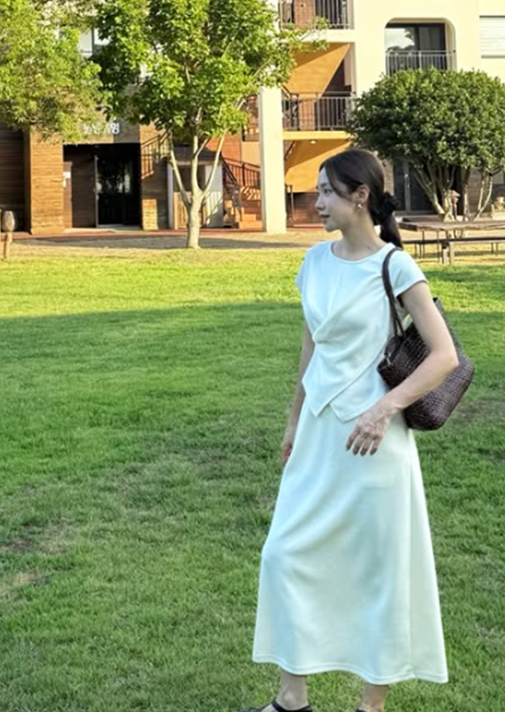 화이트 드레스로 완성한 미니멀룩, 자연 속에서 빛난 감각
