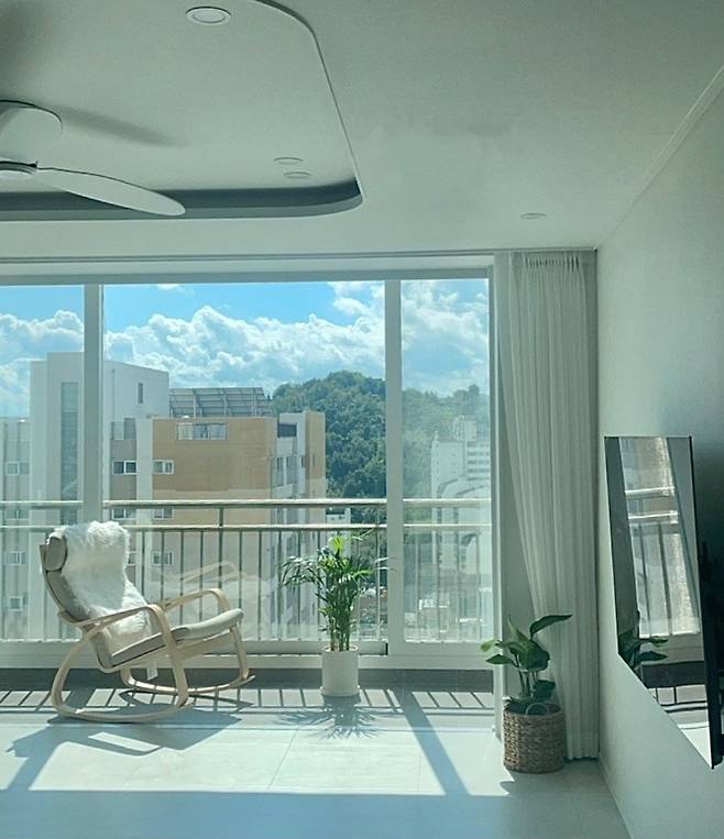 저희 부부가 살고 있는 집은 46평 아파트입니다. 건물 꼭대기에 위치한 펜트하우스이자 제일 끝에 있는 호수 라인이라, 층간 소음 걱정이 없어요. 뷰도 아주 좋고 정남향 채광과 환기가 너무 잘 되는 데다가 초 역세권이 마음에 들었어요.