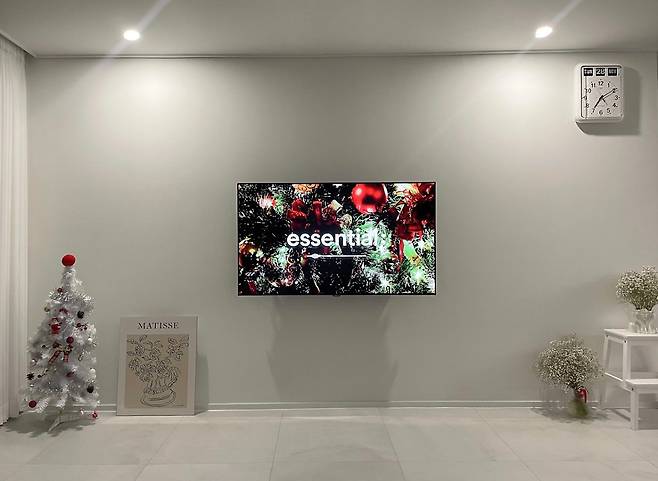 가장 먼저 보여드릴 공간은 거실입니다. 거실은 딱 정돈되어 있고 깔끔하고 깨끗한 공간으로 연출하고 싶었어요. 그래서 TV 선반도 놓지 않고 불필요한 가구들은 들이지 않았어요.