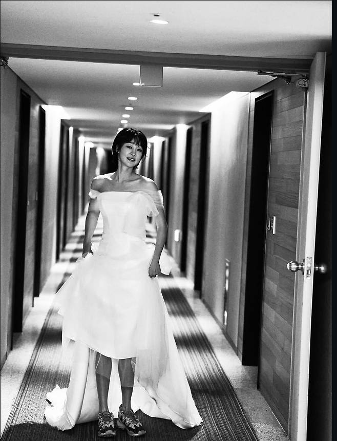 최여진은 웨딩화보에서 전통적인 아름다움과 파격적인 스트리트 감성을 완벽하게 넘나들었습니다.