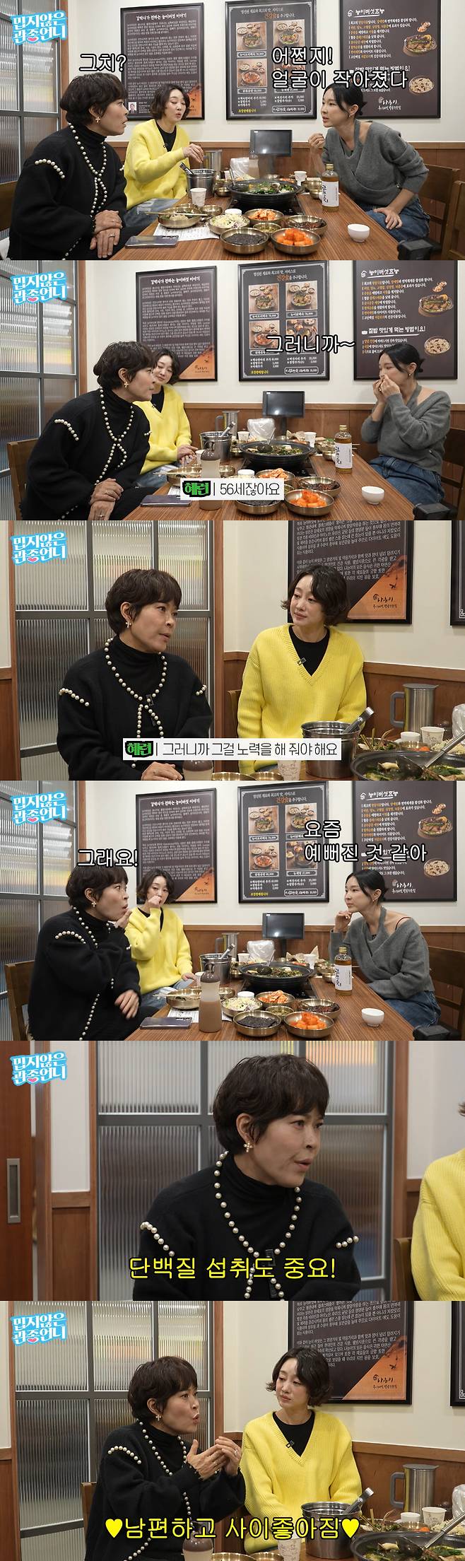 이에 이지혜는 "폐경(갱년기)도 극복하셨다"라며 자기 관리 비법을 물었고, 조혜련은 "건강기능식품을 먹고 단백질을 많이 먹으려고 한다. 삶은 달걀, 닭가슴살, 우유를 챙겨 먹고 간식으로 방울 토마토와 콩을 먹는다. 나쁜 건 먹지 않으려고 한다. 이러니까 여성호르몬도 좋아지고 남편과의 사이도 좋아졌다"라고 밝혔다.