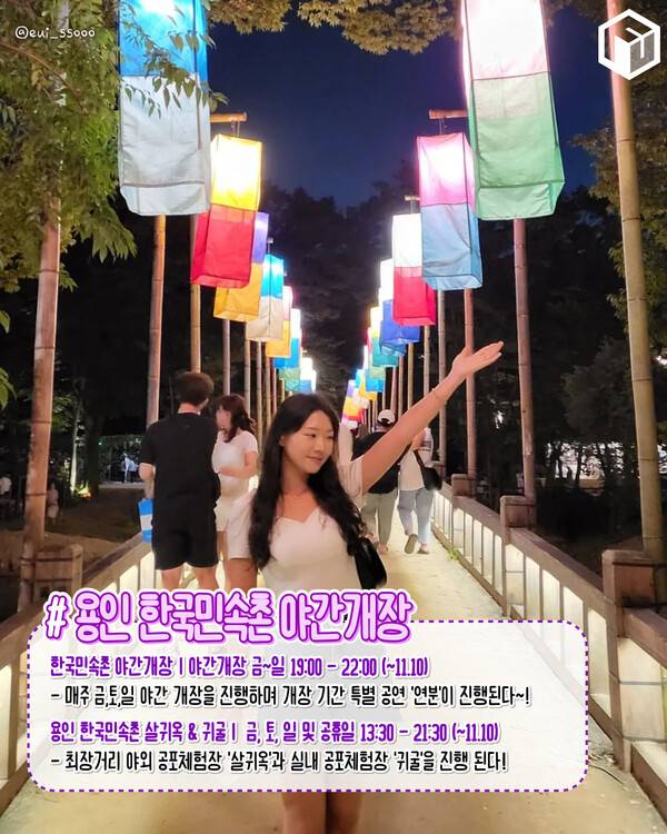 서울 근교 특별한 야간 명소 용인 한국민속촌입니다. 2024년 한국민속촌 야간개장은 11월 10일까지 매주 금요일부터 일요일과 공휴일에 오후 10시까지 진행됩니다.