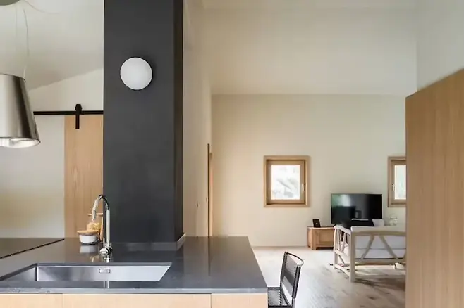 주거 공간의 재해석은 거실과 주방에서 더욱 두드러진다. 이번 리노베이션에서 가장 눈에 띄는 변화는 두 공간을 구분 짓던 벽이 사라졌다는 것이다.