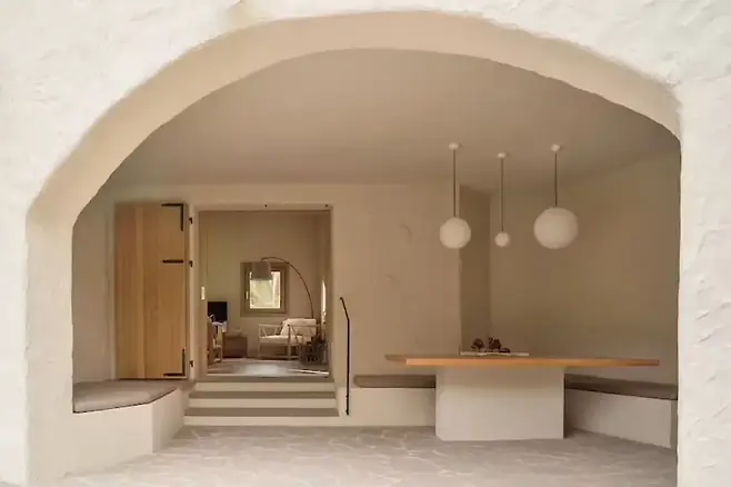 지중해 건축 특유의 곡선미를 살리면서도 현대적인 미니멀리즘 감각을 덧입혔다. 입구부터 시작되는 곡선형 출입구는 거부감 없는 흐름을 유도하며, 바깥 풍경과의 연결감을 높여준다.