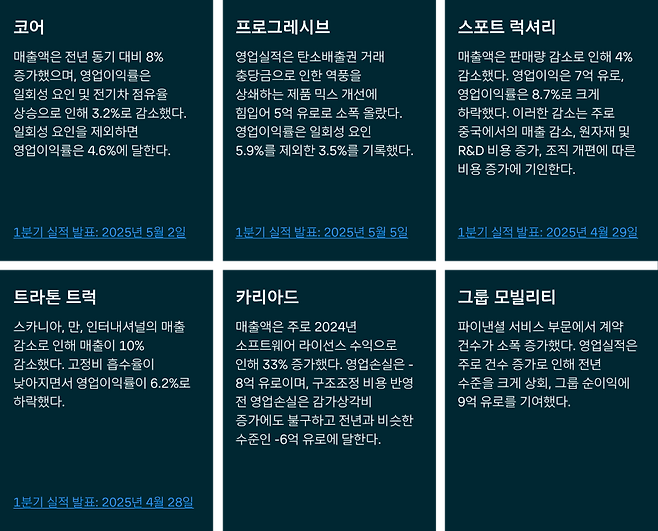 2025년 1분기 순현금흐름은 마이너스를 기록했지만 전년 동기 대비 증가했다. 이는 인수합병으로 인한 7억 유로 및 구조조정 조치와 관련된 현금 유출 5억 유로가 영향을 미쳤다.