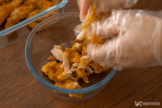 - 치킨 껍질은 기름기가 많아 일부만 사용해도 충분하다.