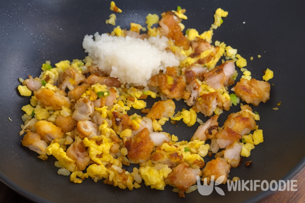 4. 밥을 넣고 달걀, 파와 함께 볶는다.