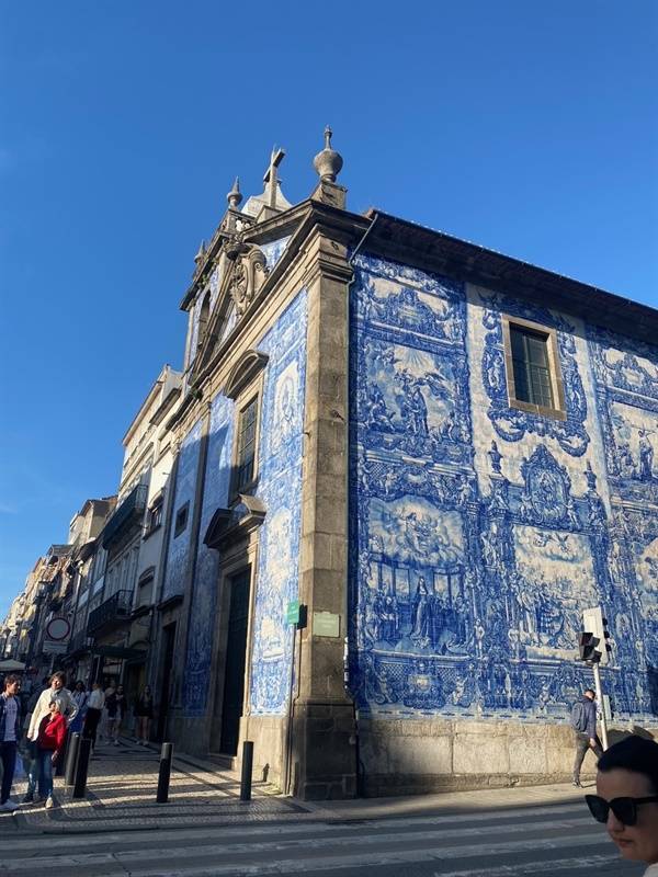 원기회복 재충전하여 저녁이지만 밖으로 나갔다. 문을 나서자 눈앞에 놀라운 광경이 펼쳐져 있다. 온 세상이 파란색이다. 해가 진 하늘은 짙푸른 코발트블루 빛이고 곳곳에 파란색 아줄레주 장식의 성당과 건물들이 늘어서 있다.