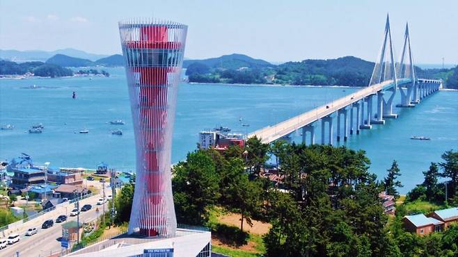 전망대에 오르면 항구에 정박해 있는 배들과 잔잔한 파도 위로 반사되는 햇빛, 멀리 이어지는 대교가 하나의 파노라마처럼 펼쳐진다.