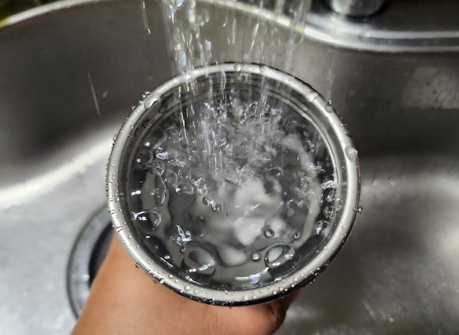 이제 뚜껑을 닫고 약 1분 정도 흔들어줍니다. 밥알이 텀블러 내부를 부딪치며 묵은 때를 벗겨내고 냄새 입자를 흡수하게 됩니다. 이 과정은 마치 천연 스크럽 효과와 비슷합니다. 마지막으로 깨끗한 물로 2~3회 충분히 헹궈주면 끝입니다.