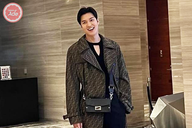 이날 이민호는 FF패턴의 오버사이즈 트렌치코트와 남성 블랙 바케트 트렁크 백을 크로스 매치하며 스타일리시한 코트 룩을 연출했다.