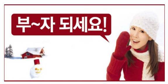 빨간 옷을 입고 하얀 모자를 쓴 인기 여자 배우가 나와서 귀엽고 상큼한 목소리로 부자가 되라고 말하는 이 광고는 굉장한 인기를 끌었었죠.