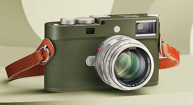 라이카 M11-P 사파리는 클래식한 감성과 현대적인 아름다움이 조화롭게 어우러진 감각적인 디자인이 특징이다. 1970년대부터 이어진 라이카의 시그니처 컬러 올리브 그린을 바디 전체에 적용하고, 카메라 상판과 전면에는 실버 컬러의 조작 다이얼과 버튼을 배치해 세련된 느낌을 더했다.