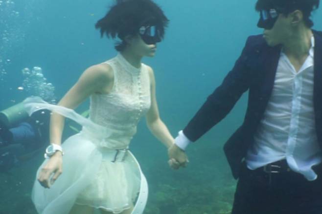 배우 부부인 곽진석과 허지나가 수중에서 단둘이서 결혼식을 올린 사연