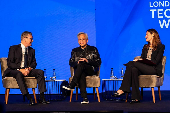 황 CEO는 이날 키어 스타머 영국 총리와 함께 무대에 올라 "우리는 프로그래밍 언어를 배워야 했다. 그렇게 복잡한 컴퓨터를 설계해야 했다"라며 "하지만 새로운 프로그래밍 언어가 등장했다. 이 새로운 프로그래밍 언어의 이름은 바로 '휴먼(human)'"이라고 강조했다.