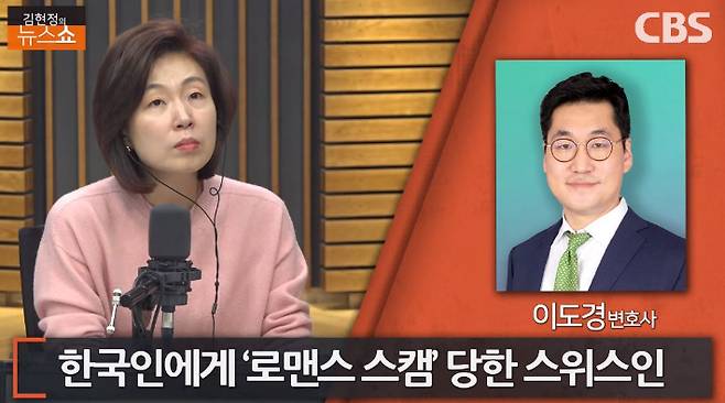 여러분 '로맨스 스캠'이라는 범죄 이제 많이들 아실 거예요. 온라인상의 상대방에게 마치 이성적으로 호감이 있는 것처럼 접근을 해서 돈을 뜯어내는 그런 범죄 수법이죠. 그런데 최근 한국인에게 로맨스 스캠을 당한 20대 스위스인이 한국으로 직접 와서 직접 범인을 잡아 화제가 되고 있습니다. 이 사람의 피해액이 무려 2억 원이었습니다. 2억 원. 2억 원이나 피해를 입으니까 참지 못하고 한국으로 온 거겠죠. 그런데 왔다고 해서 다 잡을 수 있는 게 아닐 텐데 어떻게 범인을 잡게 된 건지 지금부터 들어보겠습니다. 이 스위스인은 고향으로 돌아갔어요. 그래서 한국에 있을 때 이 스위스 청년을 도왔던 변호인 이도경 변호사와 함께 오늘 화제의 인터뷰 짚어보죠. 이도경 변호사님 나와 계십니까?