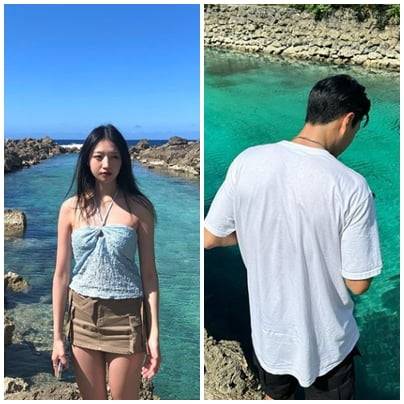 공개된 사진 속 김지연은 남자친구인 수원 삼성 소속 축구선수 전진우(개명 전 전세진)와 함께 괌에서 휴식을 취하는 모습. 남자친구의 시즌이 끝나는 시기에 맞춰 여행을 떠난 모양새다.