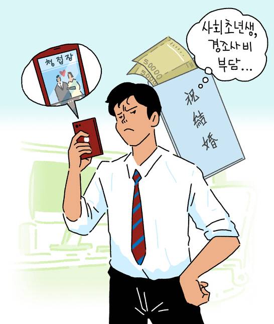 무엇보다 사회 초년생으로서 축의금이 부담되기 때문이다. 예컨대 경조사비로 10만 원을 지출할 경우 한 달에 경조사 두 번만 다녀와도 20만 원이 훌쩍 날아간다.