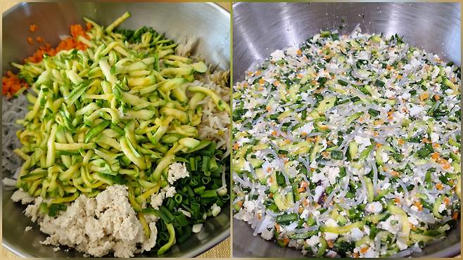 | ▲ 호박만두 빚을 재료를 한 데 모아 치댄 만두소 |