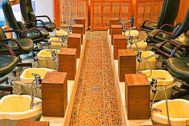 따뜻한 물에 발을 담그는 족욕 체험은 혈액순환을 돕고 피로를 풀어주는 효과가 있어 부모님과 함께 즐기기에 좋다.