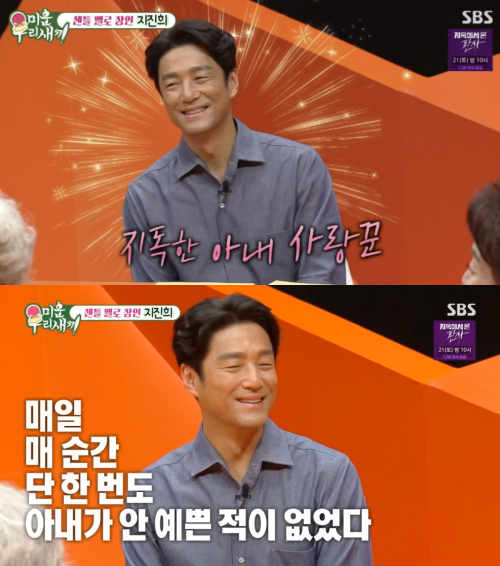 결혼 21년 차인 지진희는 "결혼 후 매일, 매 순간, 단 한 번도 아내가 안 예뻐 보인 적이 없었다"면서 사랑꾼 면모를 보였는데요.