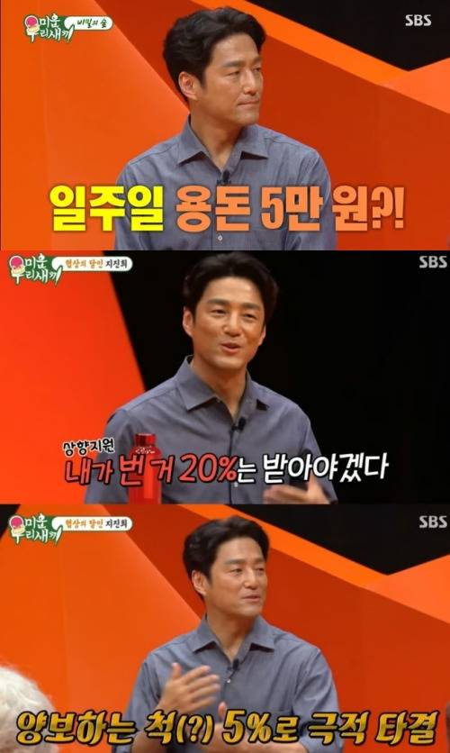용돈이 적다고 판단한 지진희는 "용돈을 올려달라. 내가 번 돈의 20%는 받고 싶다"고 주장해 2만원을 더 받게 되었다고 합니다.