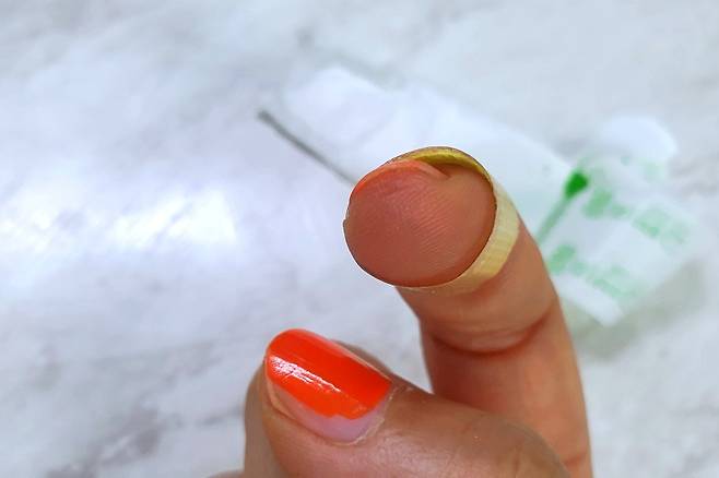 가끔 실수로 살짝 베여서 손가락에 상처가 생길 때가 있는데요. 위의 사진처럼 그냥 한번 감아 붙이는데 문제는 금방 떨어져 버리더라고요