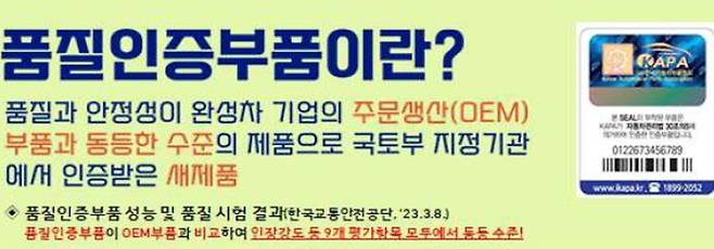 한국자동차부품협회에서는 “대한민국 정부 국토교통부가 공인한 국내 유일의 자동차 대체부품 인증기관”이라고 강조하고 있다.